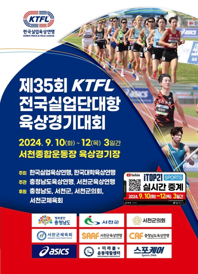 한국실업육상연맹이 실업팀 소속 선수들의 실력 향상을 위해 대학선수들과 실력을 겨룰 수 있는 합동 대회를 개최한다. 정상급 기량을 가진 실업팀과 대학팀 육상 최강자들이 한자리에 모여 치열한 경쟁을 펼칠 전망이다. 한국실업육상연맹과 한국대학육상연맹이 주최하고 서천군이 후원하는 제35회 KTFL 전국실업단대항육상...